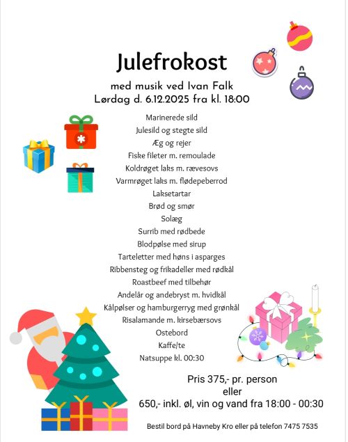 de sidste 2 weekender i November vil vi lade buffeten fremstå i julens Tema. Så kald den julefrokost og nyd en hyggelig aften i godt selskab og ring julen ind.